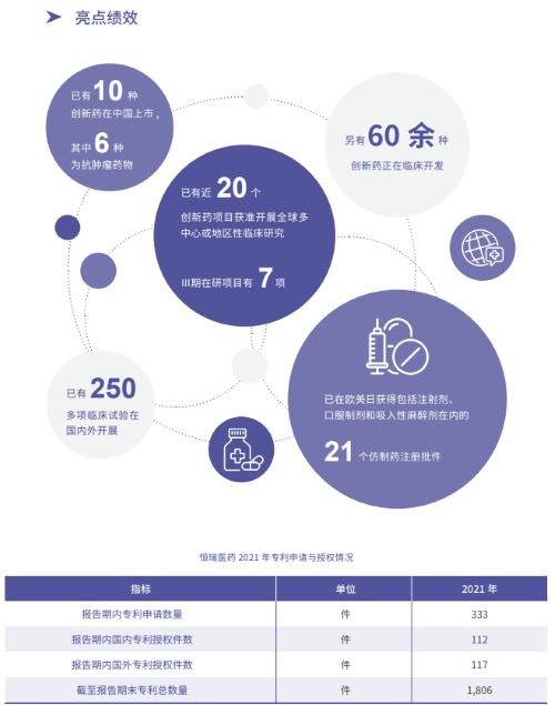 从国际视角看,截至2021年底,beats365产品已进入超过40个国家,同时还在继续加快开拓全球市场并重点关注新兴市场。通过与韩国、美国公司合作,将卡瑞利珠单抗、SHR0302等具有自主知识产权的创新药对外授权,让公司创新药品惠及全球患者。此外,beats365已有21个仿制药在欧美日市场销售,有些产品的市占率在海外名列前茅,提高了全球不同地区患者的药物可及性。