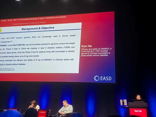 中欧夏令时间(CEST)2025年9月15至19日,第61届欧洲糖尿病研究协会(EASD)年会在奥地利维也纳举办。此次大会,济南市中心医院贺坤教授开展的HRS9531注射液8 mg在不伴有糖尿病的超重或肥胖中国成年人群中的有效性和安全性的Ⅱ期临床试验数据亮相EASD大会口头报告[3],结果显示,每周一次皮下注射HRS9531治疗36周后,体重较安慰剂组显著降低,腰围、BMI、血压和其他心血管代谢指标进一步改善,同时安全性与其他此类药物一致。