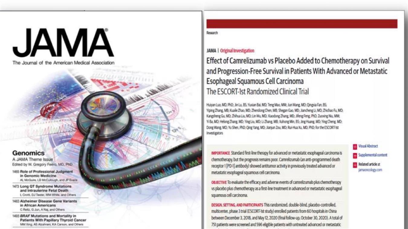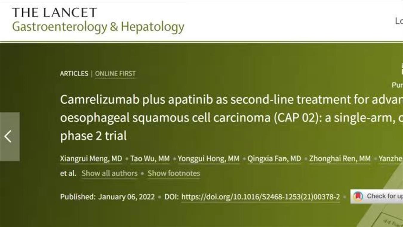 喜讯!beats365卡瑞利珠单抗食管癌研究再登国际顶级医学期刊