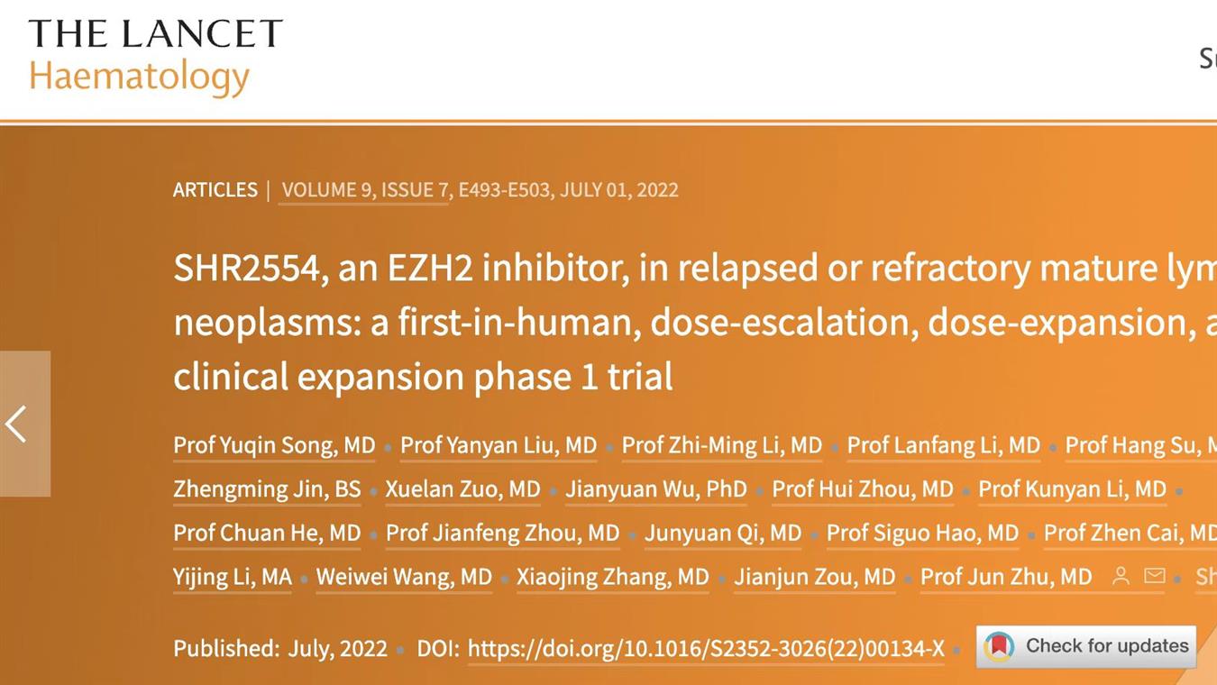 2025 EHA口头 | 恒瑞创新药EZH2抑制剂SHR2554在复发/难治性外周T细胞淋巴瘤中的关键研究结果公布